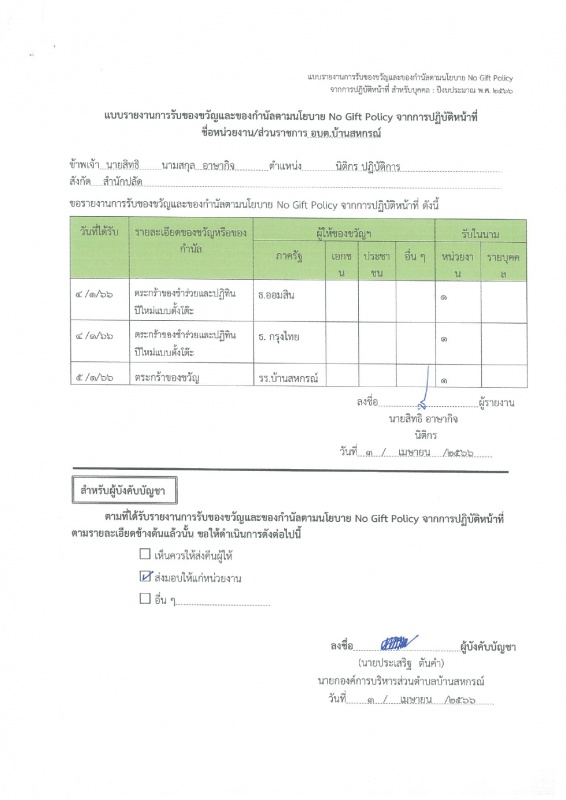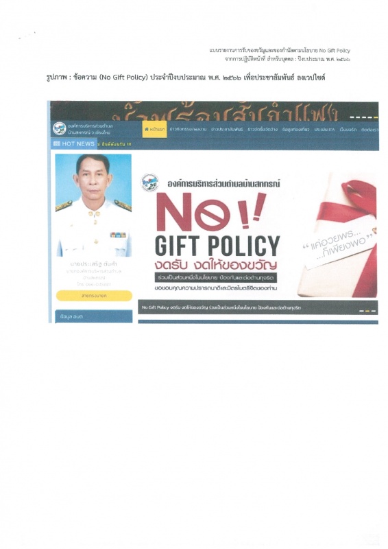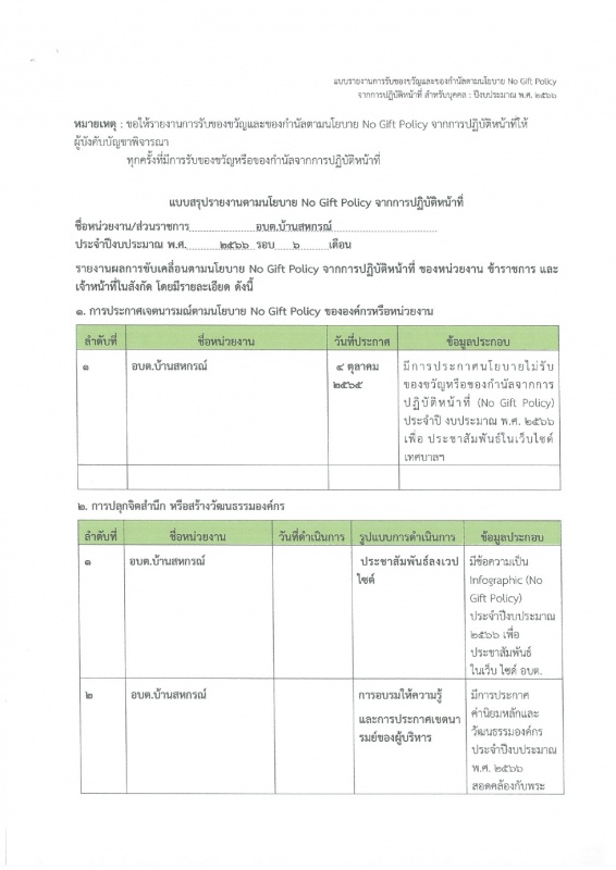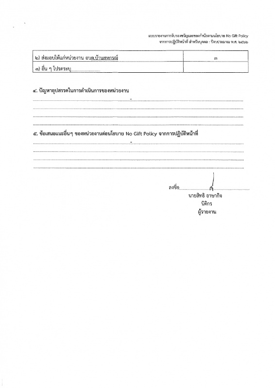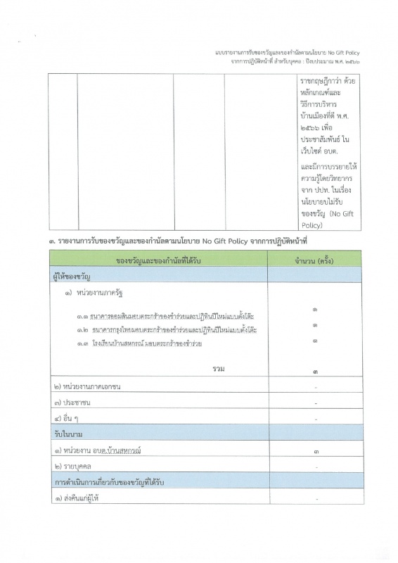 แบบสรุปรายงานผลตามนโยบายNo Gift Policy จากการปฏิบัติหน้าที่ ปี 2567