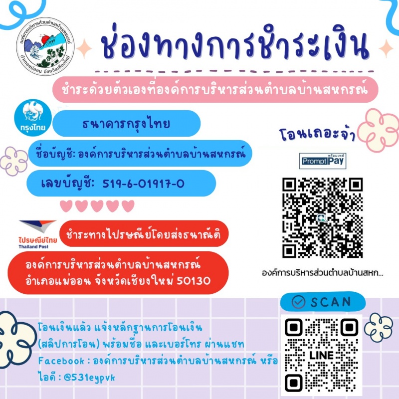 สามารถชำระค่าธรรมเนียมต่างๆ เช่น ค่าธรรมเนียมการจัดเก็บขยะ ภาษีป้าย ภาษีที่ดินและสิ่งปลูกสร้าง เป็นต้น