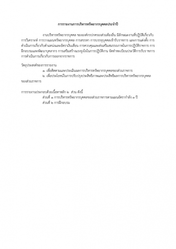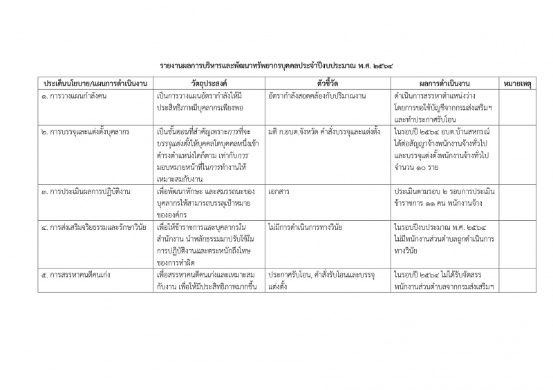 รายงานผลการบริหารและพัฒนาทรัพยากรบุคคลประจำปี