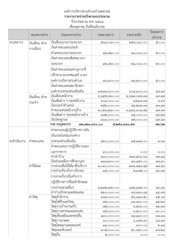 รายงานการใช้จ่ายงบประมาณประจำปี รอบ 6 เดือน (ต.ค.64-มี.ค.65)