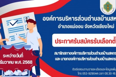 ประกาศผู้อำนวยการการเลือกตั้งประจำองศ์การบริหารส่วนตำบลบ้านสหกรณ์ อำเภอแม่ออน จังหวัดเชียงใหม่ เรื่อง ให้มีการเลือกตั้งสมาชิกสภาองค์การบริหารส่วนตำบลบ้านสหกรณ์ 2568