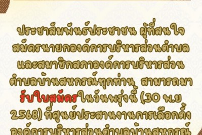 ประชาสัมพันธ์ประชาชน ผู้ที่สนใจสมัครนายกองค์การบริหารส่วนตำบลและสมาชิกสภาองค์การบริหารส่วนตำบลบ้านสหกรณ์ 2568