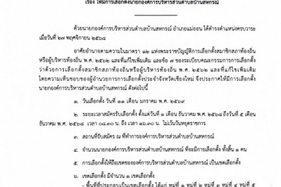 ประกาศผู้อำนวยการการเลือกตั้งประจำองค์การบริหารส่วนตำบลบ้านสหกรณ์อำเภอแม่ออน จังหวัดเชียงใหม่ เรื่อง ให้มีการเลือกตั้งนายกองค์การบริหารส่วนตำบลบ้านสหกรณ์ 2568