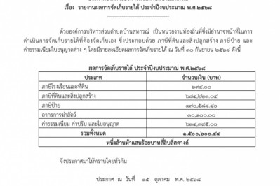 ประกาศองค์การบริหารส่วนตำบลบ้านสหกรณ์ เรื่องรายงานผลการจัดเก็บรายได้ ประจำปีงบประมาณ พ.ศ.2568