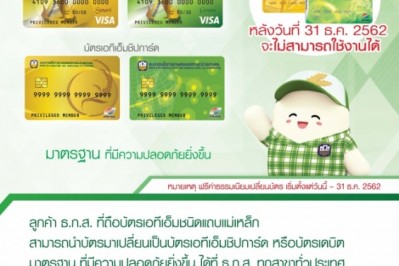 ประชาสัมพันธ์จากธนาคารธกส.สาขาแม่ออน เรื่องเปลี่ยนบัตร ATM แถบแม่เหล็ก เป็นแบบชิปการ์ด