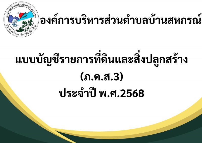 ประกาศองค์การบริหารส่วนตำบลบ้านสหกรณ์ เรือง บัญชีรายการที่ดินและสิ่งปลูกสร้าง ประจำปี 2568