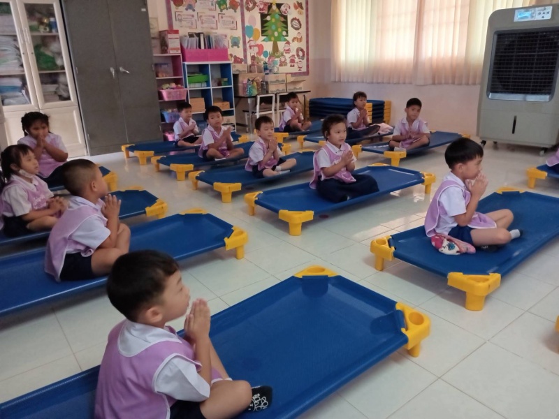 กิจกรรมปลูกฝั่งคุณธรรม จริยธรรม ตามคำสอนพระพุทธศาสนา ศูนย์พัฒนาเด็กเล็กสิรินธรตำบลบ้านสหกรณ์ ประจำเดือน มกราคม 2568