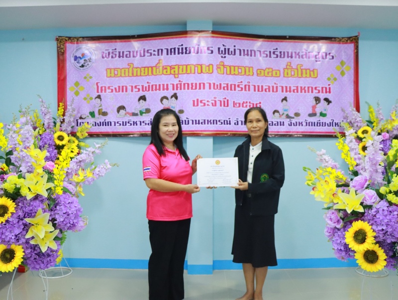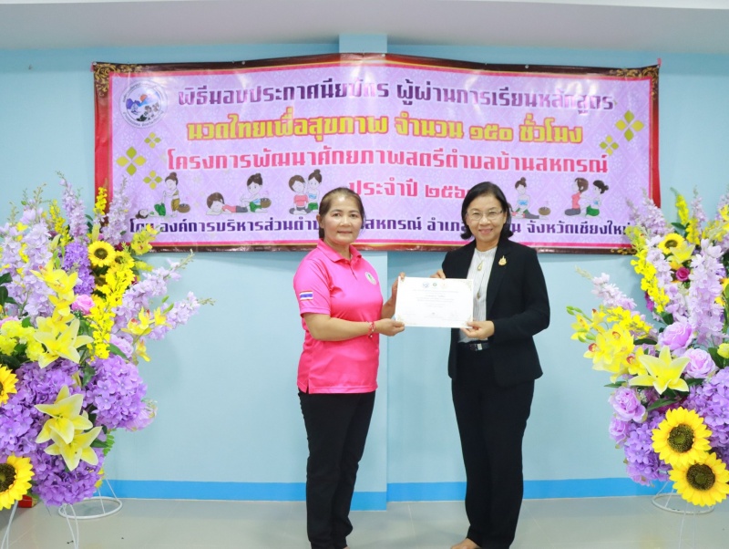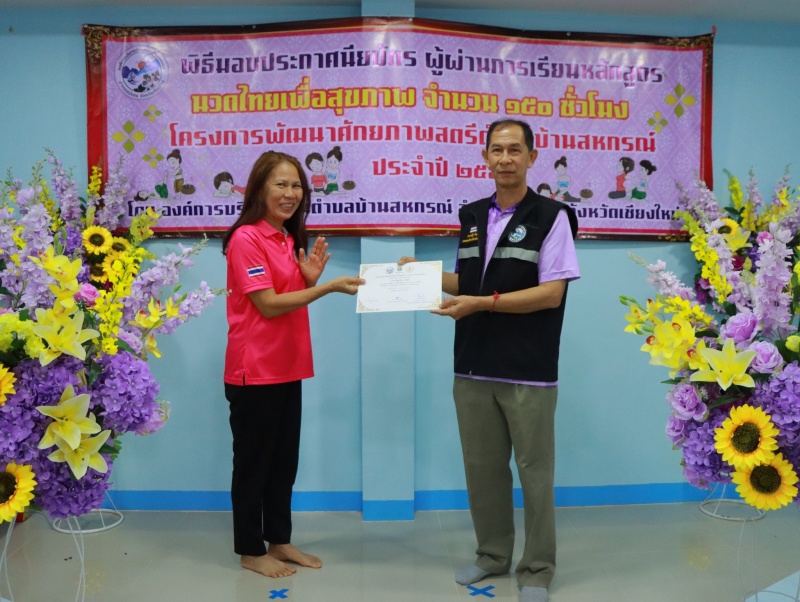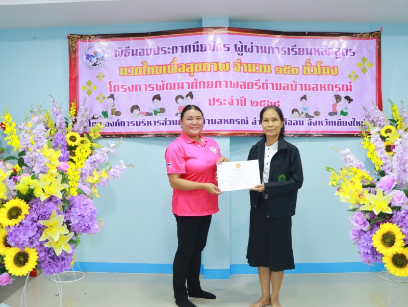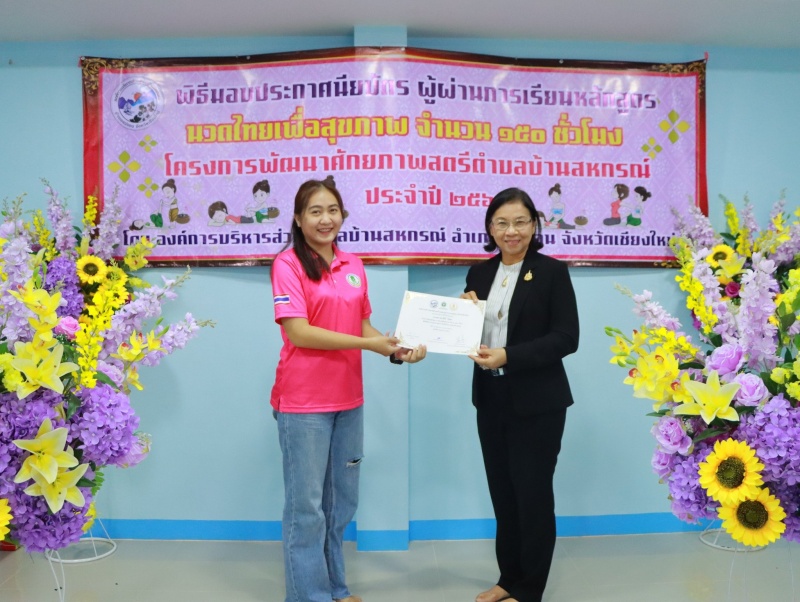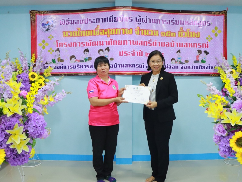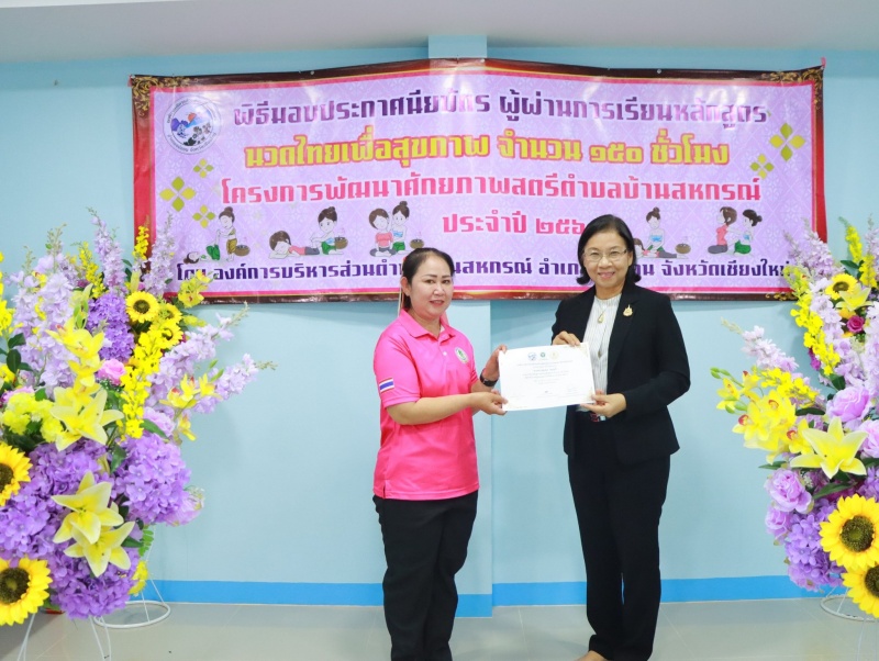 พิธีมอบประกาศนียบัตร ผู้ผ่านการเรียนหลักสูตร นวดเพื่อสุขภาพ จำนวน150ชั่วโมง