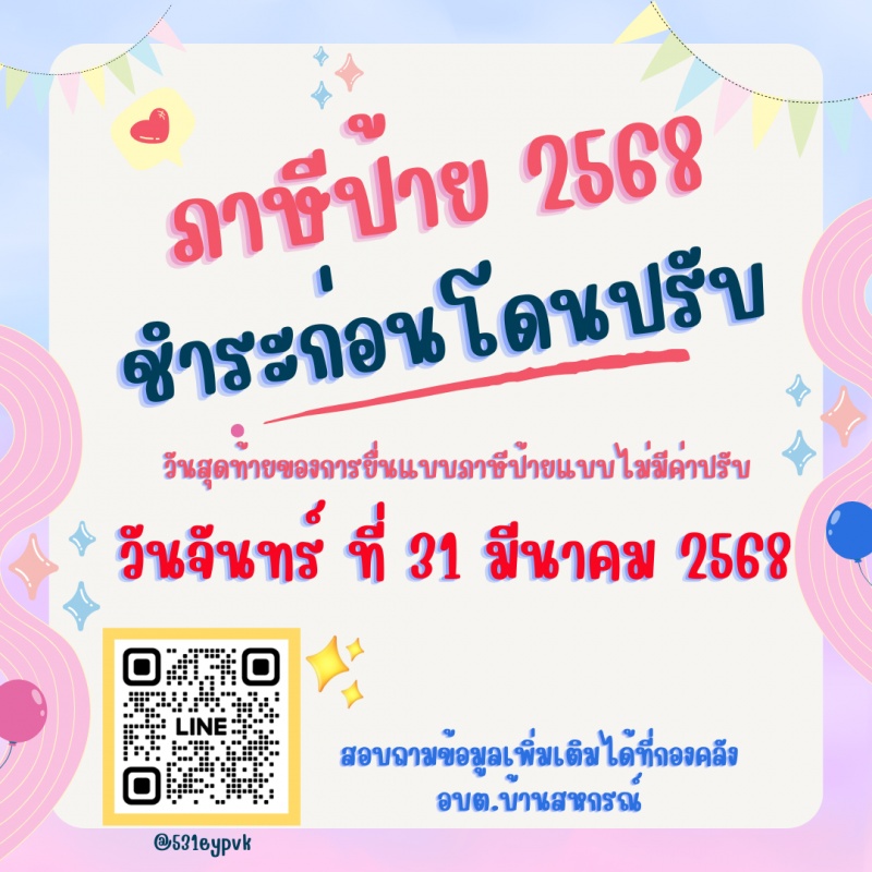 แจ้งเตือนชำระภาษีป้ายประจำปี 2568