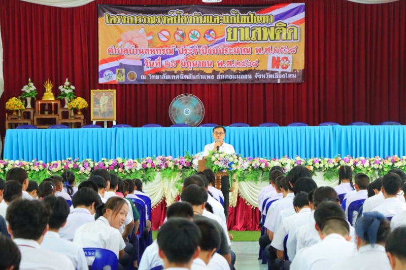 องค์การบริหารส่วนตำบลบ้านสหกรณ์ จัดทำกิจกรรมโครงการรณรงค์ ป้องกัน และแก้ไขปัญหายาเสพติดประจำปีงบประมาณ 2568 ณ วิทยาลัยเทคนิคสันกำแพง ได้รับเกียรติจาก นาย สุทธิชัย ตรีศิลสัตย์ นายอำเภอแม่ออน เป็นประธานเปิดโครงการฯ พร้อมนี้ได้ร่วมลงนามบันทึกข้อตกลงความร่วมมือ รณรงค์ ป้องกันและแก้ไขปัญหายาเสพติด ปี พ.ศ. 2568 กับหน่วยงานภาคีเครือข่ายในอำเภอแม่ออน มีนายประเสริฐ ตันคำ และคณะผู้บริหาร สมาชิกสภา พนักงานส่วนตำบลและเจ้าหน้าที่เข้าร่วม ทั้งนี้มีวัตถุประสงค์เพื่อเสริมสร้างความรู้ความเข้าใจให้ผู้เข้าร่วมอบรม ได้ตระหนักถึงโทษของยาเสพติด การแก้ไขปัญหายาเสพติดและป้องกันยาเสพให้หมดไปจากท้องถิ่น เพื่อสร้างกลไกการมีส่วนร่วมในการลดปัญหา การแพร่ระบาดของยาเสพติดในสถานศึกษาให้หมดสิ้นไป เพื่อ เป็นการแลกเปลี่ยนความรู้ในการอบรม และตระหนักถึงพิษภัยของยาเสพติดเพื่อให้เกิดผลเป็นรูปธรรมสามารถนำมาใช้ในการรณรงค์ป้องกันและแก้ไขปัญหายาเสพติด