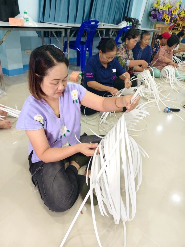โครงการพัฒนาศักยภาพสตรี เปิดอบรมการส่งเสริมอาชีพและการแปรรูปผลิตภัณฑ์สำหรับประชาชน ประจำปี พ.ศ.2568 กิจกรรม "ฝึกอบรมวิชาชีพผลิตภัณฑ์การสานเส้นพลาสติก"