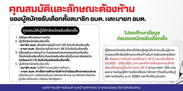 คุณสมบัติผู้มีสิทธิสมัครรับเลือกตั้งสมาชิกสภาอบต. และนายกอบต. และ คุณสมับติผู้มีสิทธิเลือกตั้งสมาชิกสภาอบต. และนายกอบต.2569