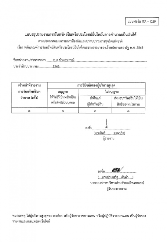แบบรายงานการรับทรัพย์สินหรือประโยชน์อื่นใดอันอาจคำนวณเป็นเงินได้ ประจำปีงบ พ.ศ.2566