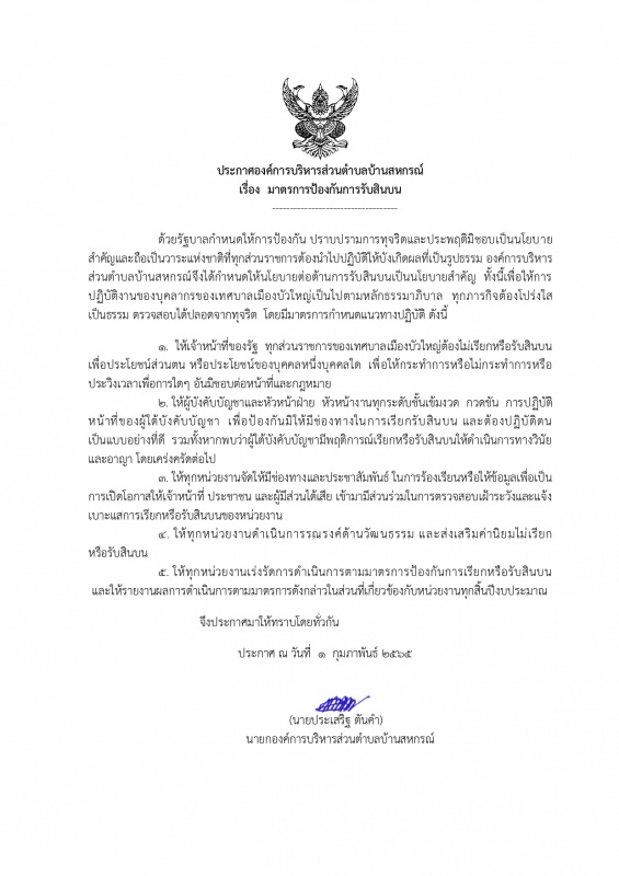 มาตรการป้องกันการรับสินบน ปี2565