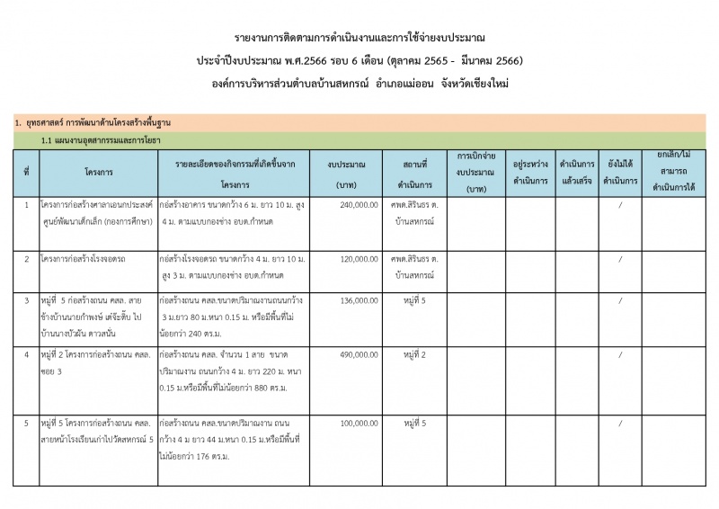 | 2 | รายงานการติดตามการดำเนินงานและการใช้จ่ายงบประมาณ ประจำปีงบประมาณ พ.ศ.2566 รอบ 6 เดือน | 207 KB. | 208 |