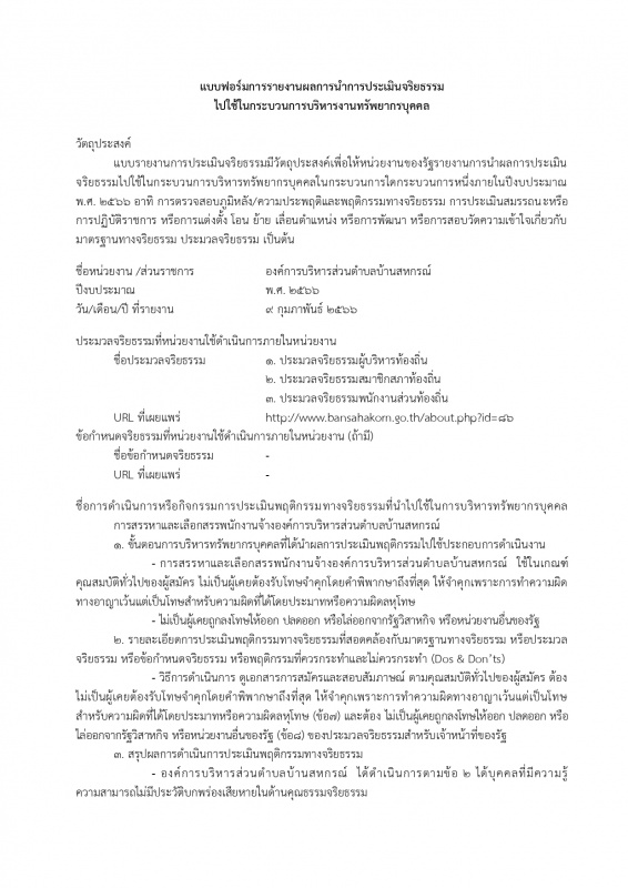 | 1 | แบบฟอร์มการรายงานผลการนำการประเมินจริยธรรม ไปใช้ในกระบวนการบริหารงานทรัพยากรบุคคล ปีงบประมาณ 2566 | 84 KB. | 590 |