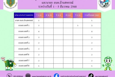 จำนวนผู้สมัครเลือกตั้งสมาชิกสภาอบต.บ้านสหกรณ์ และนายกอบต.บ้านสหกรณ์ ระหว่างวันที่ 1-5 ธันวาคม 2568