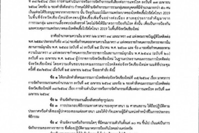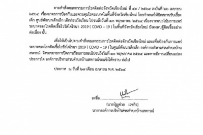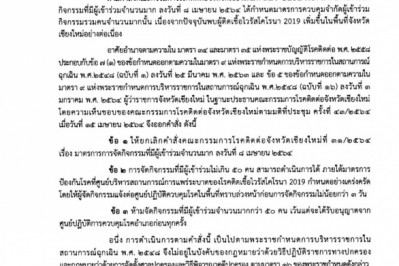 คำสั่งคณะกรรมการโรคติดต่อจังหวัดเชียงใหม่ ที่ 44/2564 เรื่อง มาตรการป้องกันและควบคุมโรคในพื้นที่จังหวัดเชียงใหม่ให้ปิดสถานที่รวมทั้งสิ้น19ประเภท