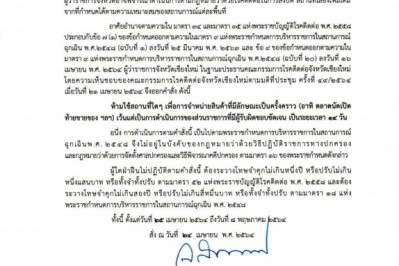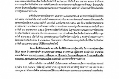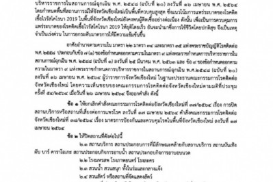 คำสั่งคณะกรรมการโรคติดต่อจังหวัดเชียงใหม่ ที่ 41/2564 เรื่อง ปิดสถานที่เสี่ยงเป็นการชั่วคราว