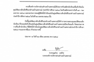 ประกาศองค์การบริหารส่วนตำบลบ้านสหกรณ์ เรื่อง ขอขยายการปิดการเรียนการสอนศูนย์พัฒนาเด็กเล็กสิรินธรตำบลบ้านสหกรณ์ เนื่องจากเหตุกรณีพิเศษ