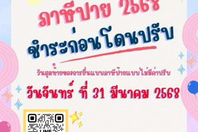 ประกาศองค์การบริหารส่วนตำบลบ้านสหกรณ์ เรื่องการขยายกำหนดเวลาดำเนินการตามพระราชบัญญัติภาษที่ดินและสิ่งปลูกสร้าง พ.ศ.2562 ประจำปี 2568