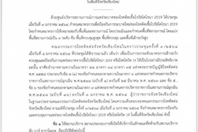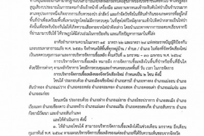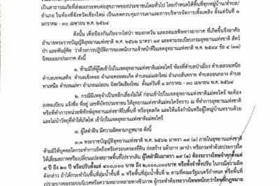 ประกาศจังหวัดเชียงใหม่ เรื่องกำหนดการมาตรการทางกฏหมายในการควบคุมการเผาในที่โล่งทุกชนิด