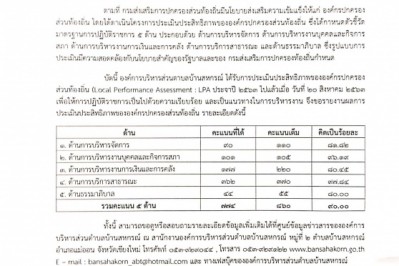 ผลการประเมินประสิทธิภาพขององค์กรปกครองส่วนท้องถิ่น (Local Performance Assessment : LPA ประจำปี 2563)