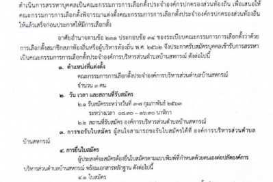 รับสมัครบุคคลเข้ารับการสรรหาเป็นคณะกรรมการการเลือกตั้งประจำองค์การบริหารส่วนตำบลบ้านสหกรณ์