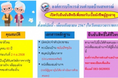 ประชาสัมพันธ์ผู้สูงอายุและผู้พิการรายใหม่ เดือน พฤศจิกายน 66 และหนังสือประชาสัมพันธ์จ่ายเบี้ยยังชีพ เดือนพฤศจิกายน 66 กำหนดจ่ายในวันศุกร์ ที่ 10 พฤศจิกายน 66 กำ