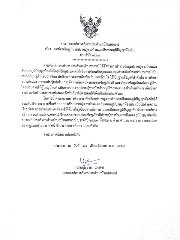 บ้านสหกรณ์ปฏิบัติหน้าที่นายกองค์การบริหารส่วนตำบลบ้านสหกรณ์