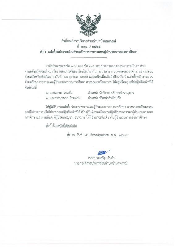 คำสั่งแต่งตั้งผู้รักษาราชการแทนผู้อำนวยการกองการศึกษาศาสนาและวัฒนธรรม
