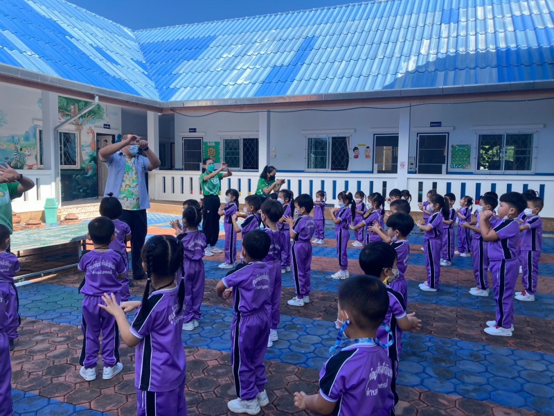 การงดสูบบุหรี่ มีการฝึกปฏิบัติการล้างมือ 7 ขั้นตอน จำนวนผู้เข้าร่วม ชั้นอนุบาล 1-3 จำนวน 65 คน