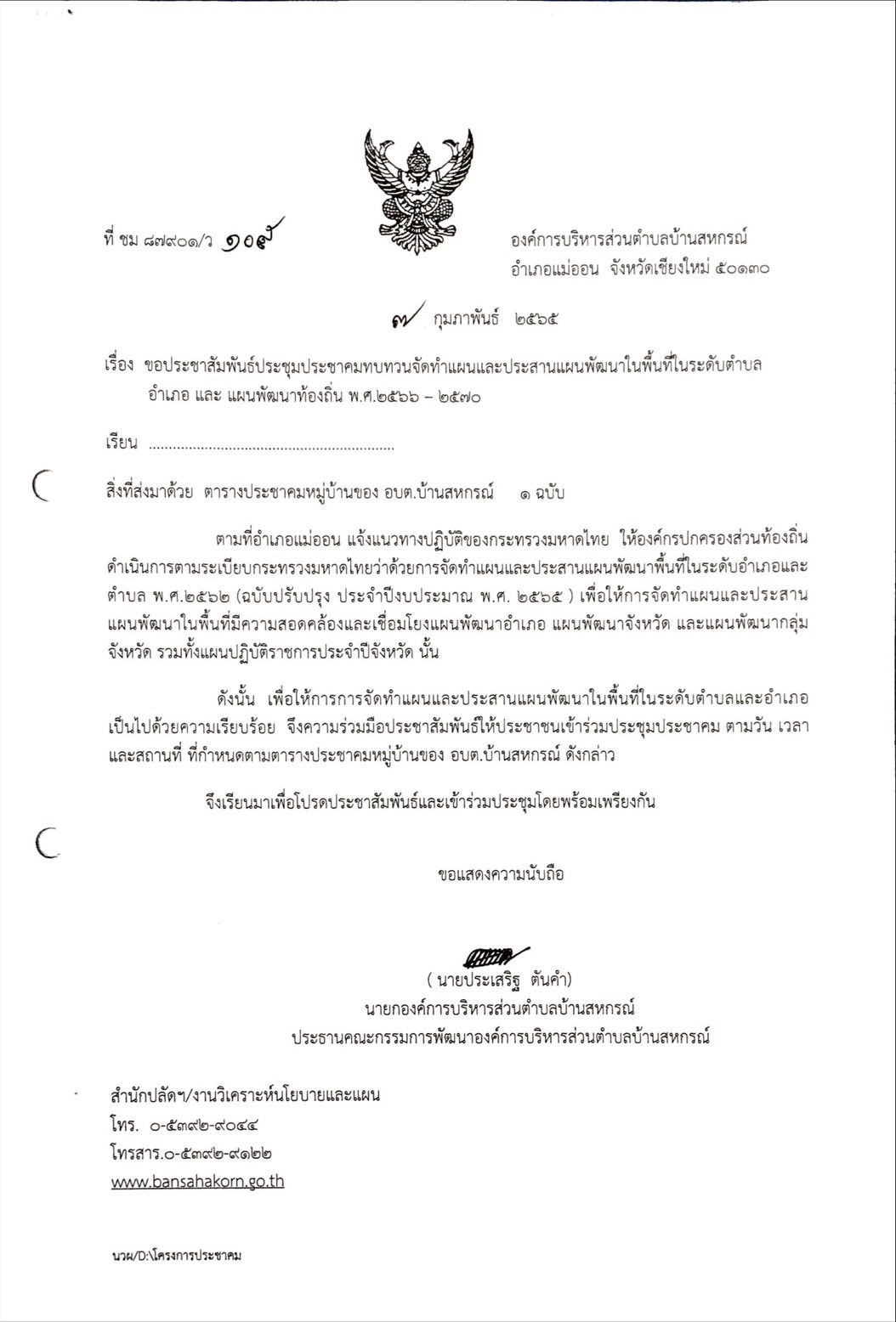 บ้านสหกรณ์ปฏิบัติหน้าที่นายกองค์การบริหารส่วนตำบลบ้านสหกรณ์