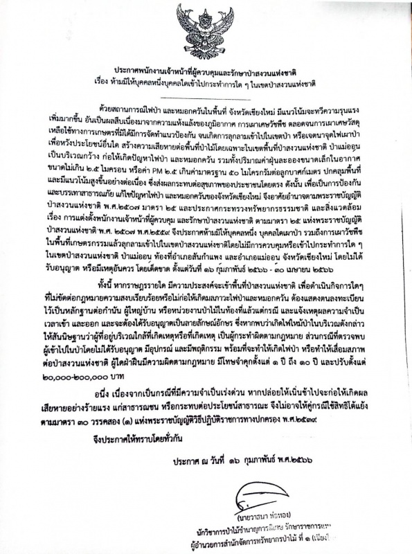 เรื่อง ห้ามมีให้บุคคลหนึ่งบุคคลใคเข้าไปกระทำการใดๆ ในเขตป่าสงวนแห่งชาติ