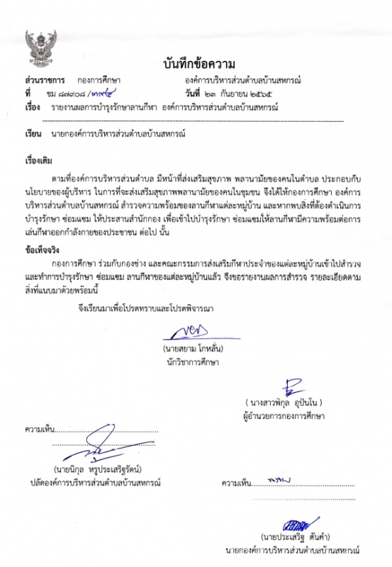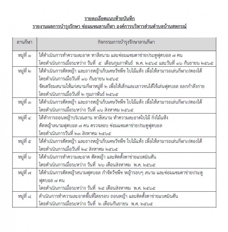 การบำรุงรักษาลานกีฬาองค์การบริหารส่วนตำบลบ้านสหกรณ์