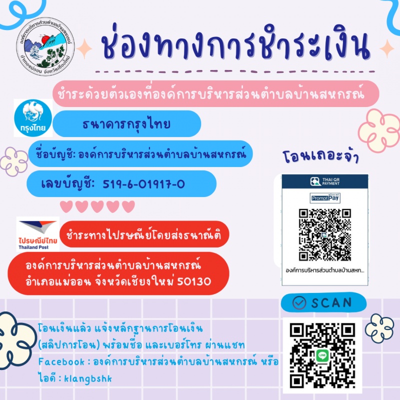 ประชาสัมพันธ์ช่องทางการชำระเงินภาษีและค่าธรรมเนียมต่าง ๆ