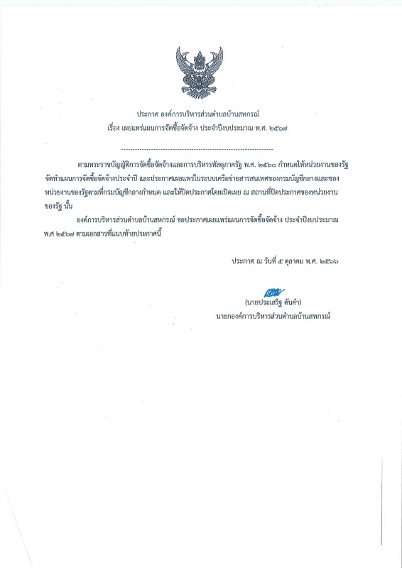 ประเผยแพร่จ้างเหมาเอกชนเก็บขยะและนำมูลฝอยไปกำจัด ในเขตพื้นที่รับผิดชอบ องค์การบริหารส่วนตำบลบ้านสหกรณ์ อำเภอแม่ออน จังหวัดเชียงใหม่