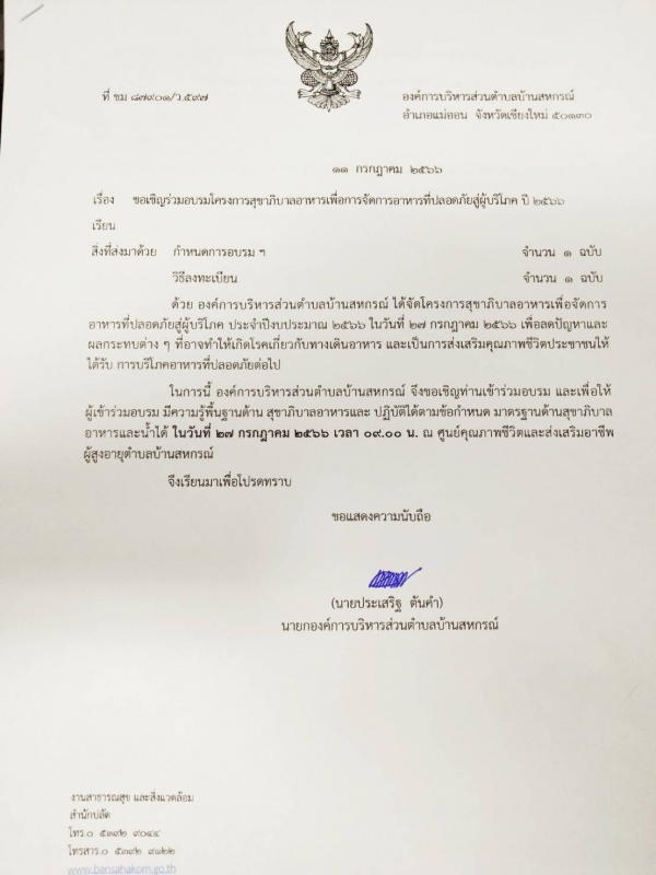 บ้านสหกรณ์ปฏิบัติหน้าที่นายกองค์การบริหารส่วนตำบลบ้านสหกรณ์