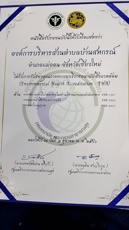 วัน จันทร์ ที่15มกราคม2567 พิธีรับมอบเกียรติบัตรรับรองคุณภาพระบบบริการอนามัยและสิ่งแวดล้อม องค์กรปกครองท้องถิ่นจังหวัดเชียงใหม่ ได้รับการรับรองคุณภาพระบบบริการอนามัยสิ่งแวดล้อม (Environmental Health Accreditation :EHA) ด้าน #การจัดการสุขาภิบาลอาหารในสถานที่จำหน่ายและสะสมอาหาร