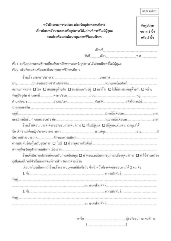 หากมีประชาชนท่านใด มีความประสงค์จะอุปการะคนพิการที่ไม่มีผู้ดูแล