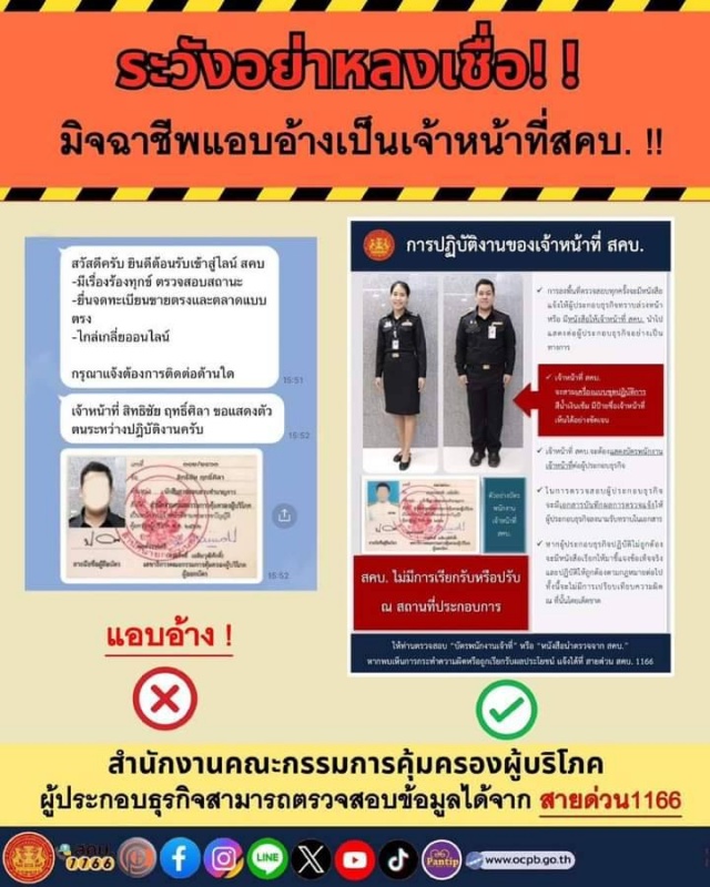 ประชาสัมพันธ์แจ้งเตือน กรณีมีผู้แอบอ้างเป็นเจ้าหน้าที่ สคบ.