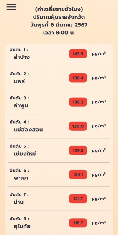 #รายงานปริมาณฝุ่นละออง PM 2.5 วันที่ 6 มี.ค. 2567