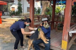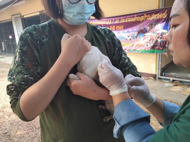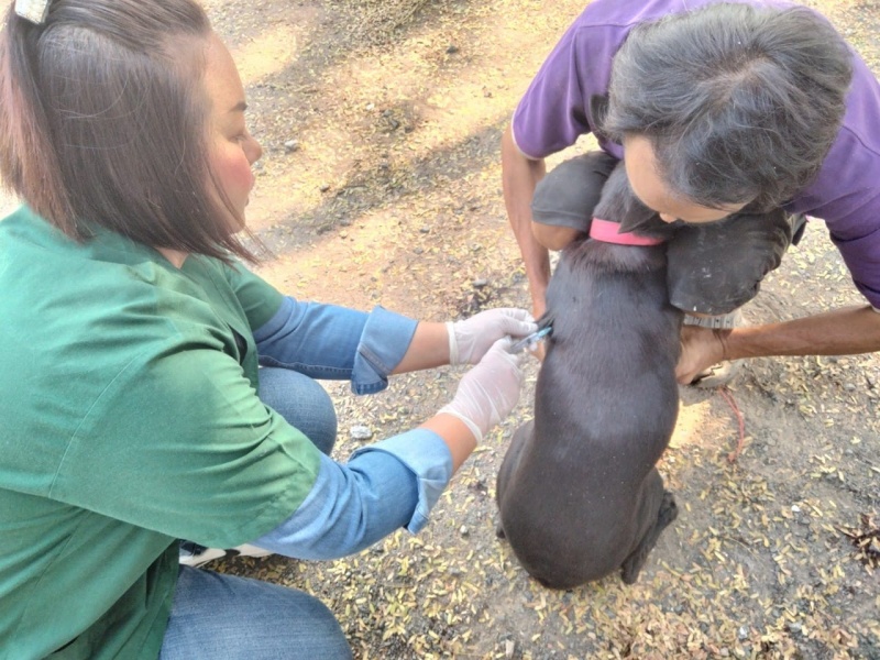 องค์การบริหารส่วนตำบลบ้านสหกรณ์ ร่วมกับปศุสัตว์อำเภอแม่ออน ฉีดวัคซีนพิษสุนัขบ้า ในพื้นที่ หมู่ 1 และหมู่ 2