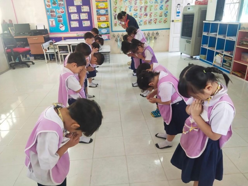 วันที่ 23 - 26 เมษายน 2567 เด็กนักเรียนชั้นอนุบาล 1 ได้ทำกิจกรรมปลูกฝั่งคุณธรรม จริยธรรม