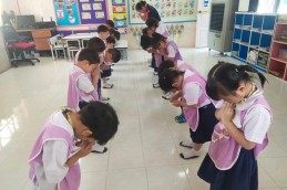 การไหว้พระสวดมนต์ การทำสมาธิ การไหว้ การกล่าวคำขอบคุณก่อนรับประทานอาหาร
