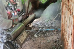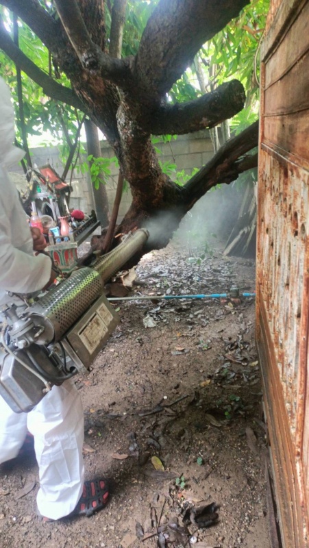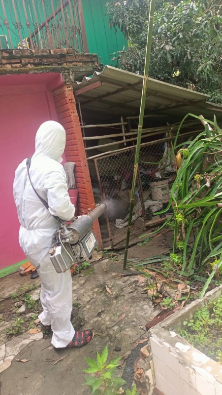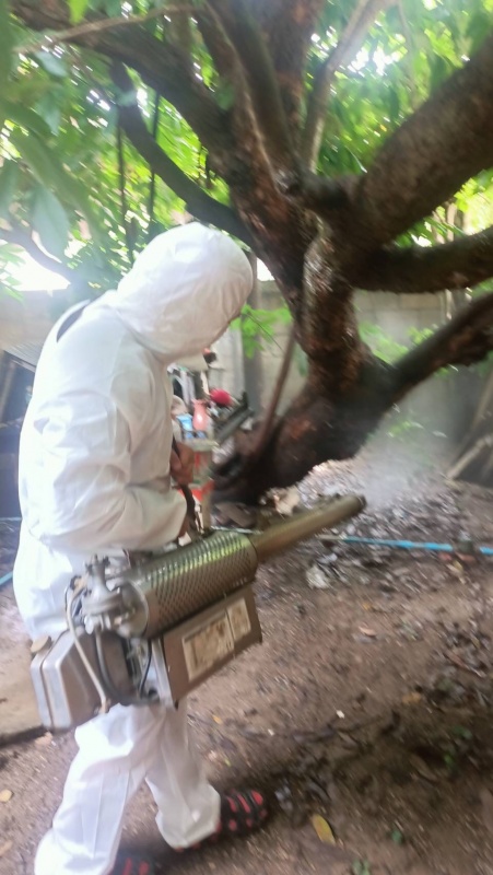 จัดกิจกรรมสำรวจและตรวจลูกน้ำยุงลาย โดยการพ้นสารเคมีแบบฝอยละออง ในบ้านสหกรณ์ หมู่ที่ 1 เพื่อป้องกันโรคไข้เลือดออก