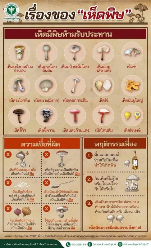 ประชาสัมพันธ์ แจ้งเตือนเฝ้าระวังการป่วยด้วยโรคอาหารเป็นพิษจากการรับประทานเห็ดพิษ "เห็ด ไม่รู้จัก ไม่แน่ใจ ไม่เก็บ ไม่กิน"