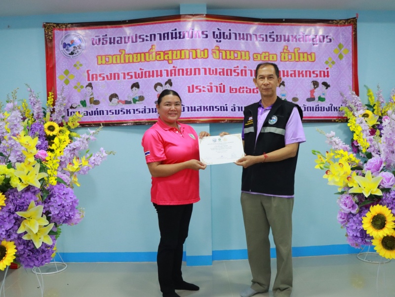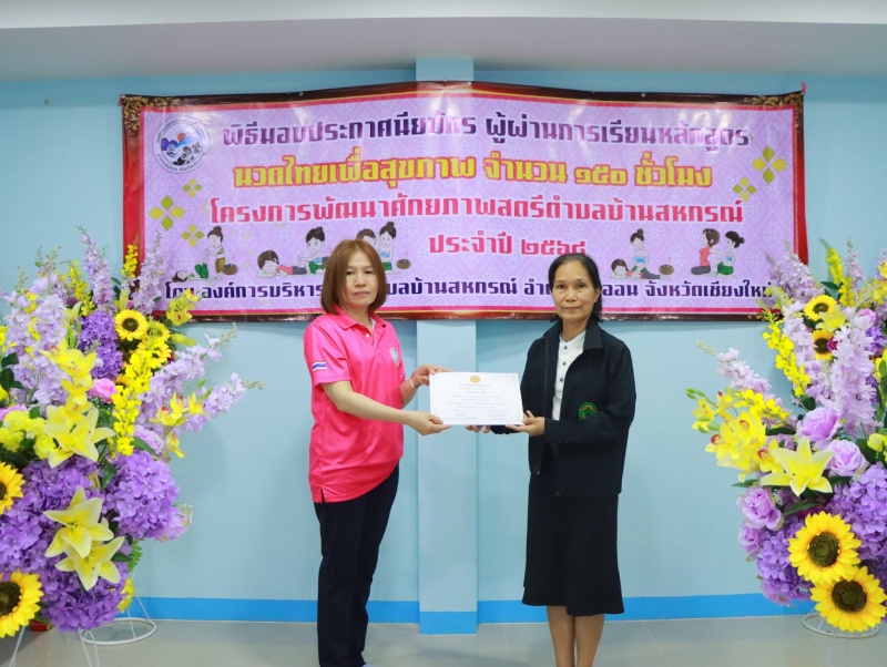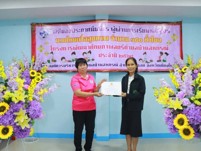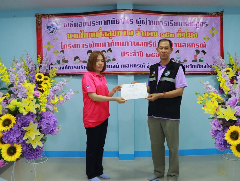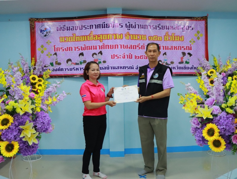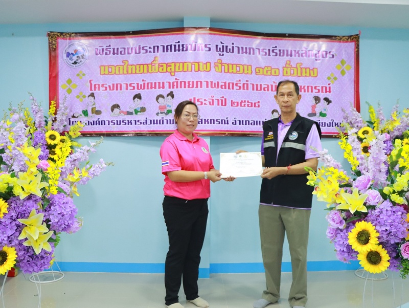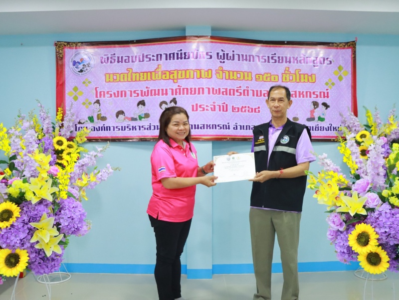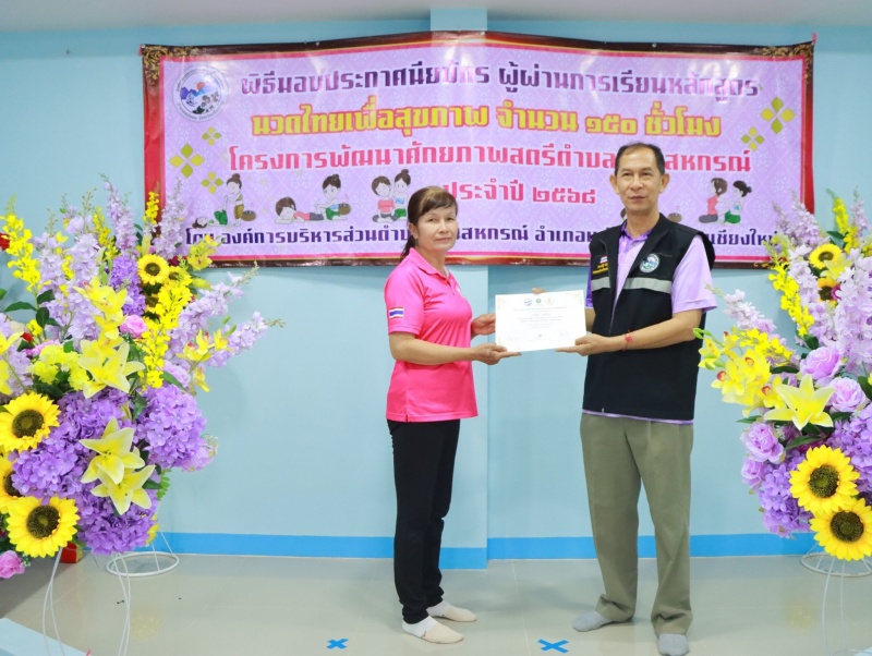 พิธีมอบประกาศนียบัตร ผู้ผ่านการเรียนหลักสูตร นวดเพื่อสุขภาพ จำนวน150ชั่วโมง