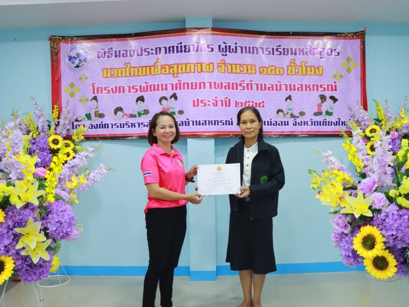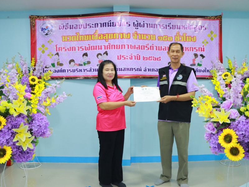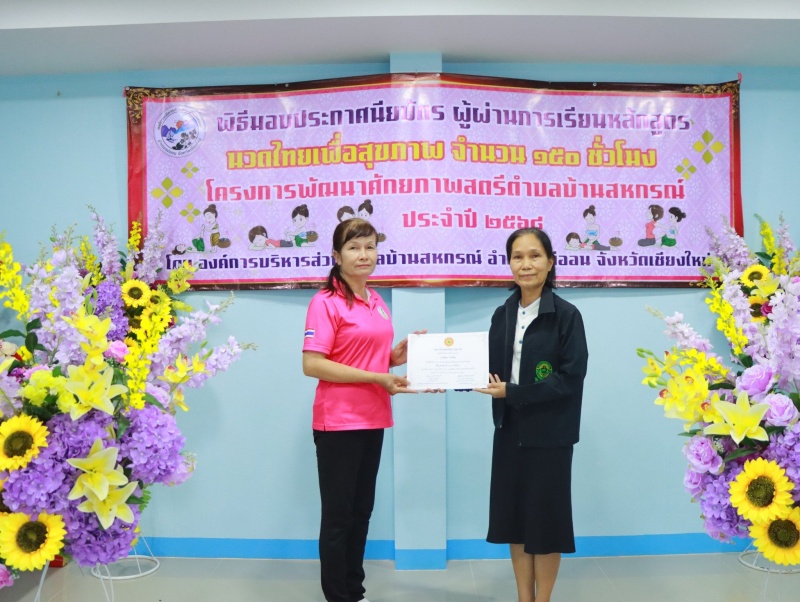 พิธีมอบประกาศนียบัตร ผู้ผ่านการเรียนหลักสูตร นวดเพื่อสุขภาพ จำนวน150ชั่วโมง ประจำปี 2568