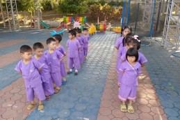 เด็กนักเรียนศูนย์พัฒนาเด็กเล็กสิรินธรตำบลบ้านสหกรณ์ ได้ทำกิจกรรมปลูกฝั่งคุณธรรม จริยธรรม